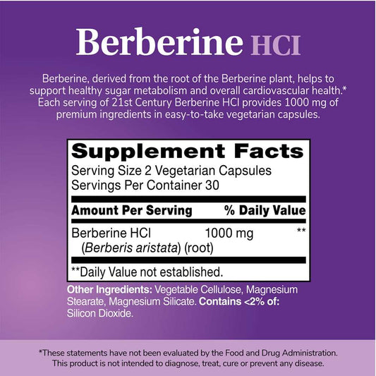 21st Century Berberine H Cl 1000 Mg 60 Caps