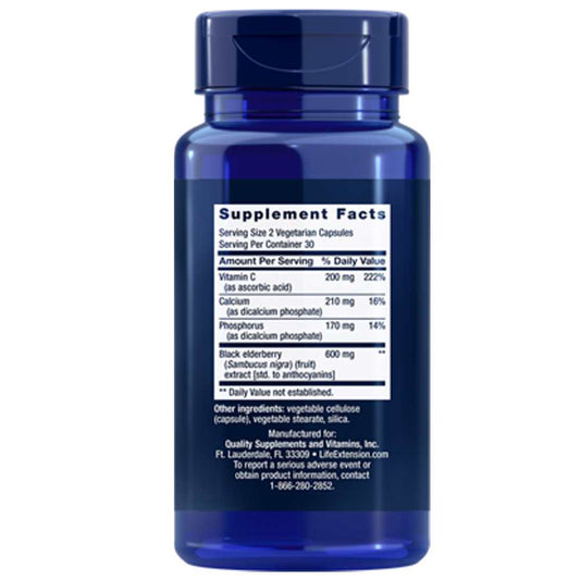 Life Extension Black Elderberry + Vitamin C – 60 Vegetarian Capsules