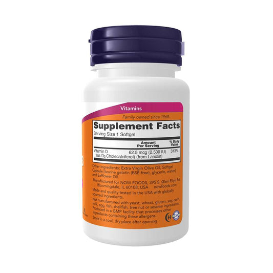 Now Foods Vitamin D3 2,500 Iu – Supports Bone, Teeth & Immune Health – Non-Gmo – 180 Softgels