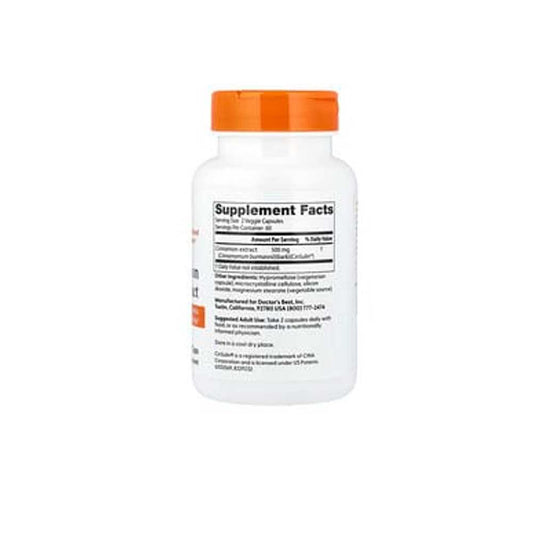 Doctor's Best Cinnamon Extract with CinSulin, 500 mg Per Serving, 120 Veggie Caps