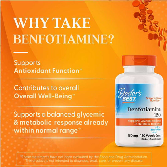 Doctor's Best Benfotiamine 300mg – Benfo Pure – Supports Glycemic Balance & Metabolic Response – 60 Caps