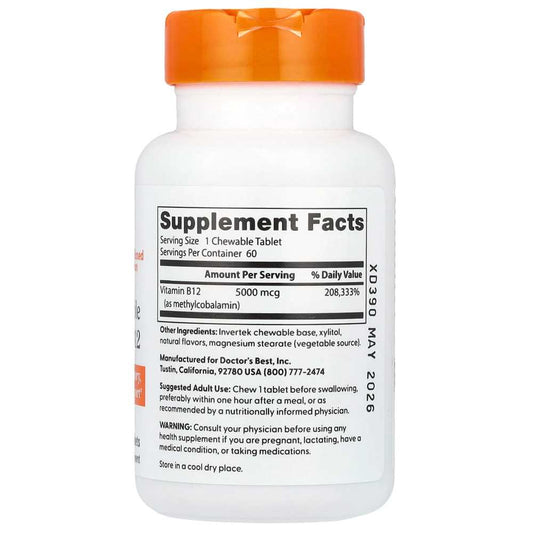 Doctor's Best Chewable Fully Active B12, Mixed Berries , 5,000 Mcg, 60 Tablets