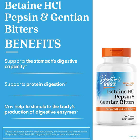 Doctor's Best Betaine H Cl, Pepsin and Gentian Bitters, 360 Capsules