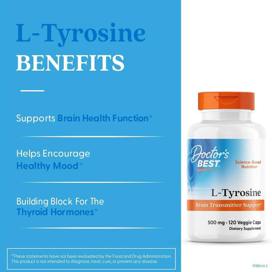 Doctor's Best Best L-Tyrosine, 500 Mg, 120 Veggie Caps
