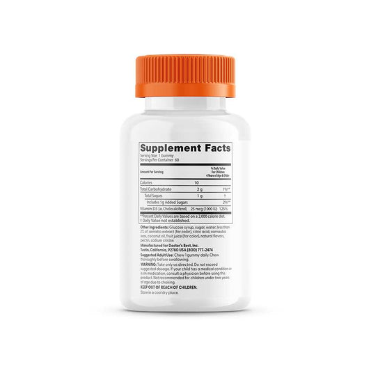 Doctor's Best Doc's Kids, Vitamin D3 Gummies, All Natural Fruit, 25 Mcg (1,000 Iu), 60 Natural Fruit Pectin Gummies