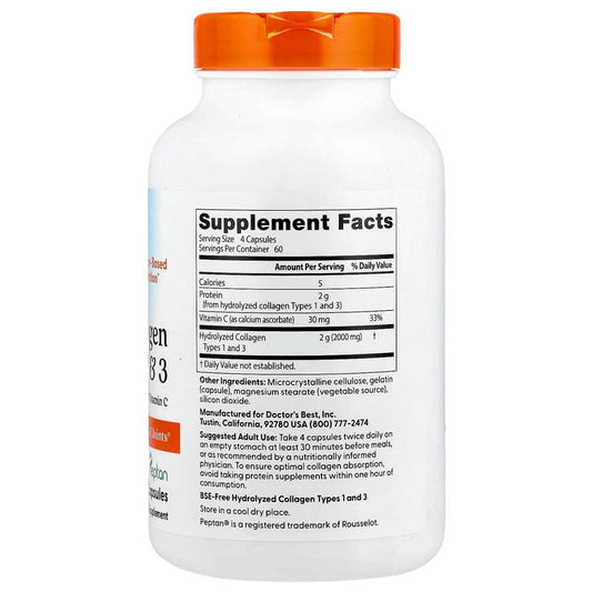 Doctor's Best Collagen Types 1 and 3 and Vitamin C, 2,000 Mg per Serving, 240 Capsules