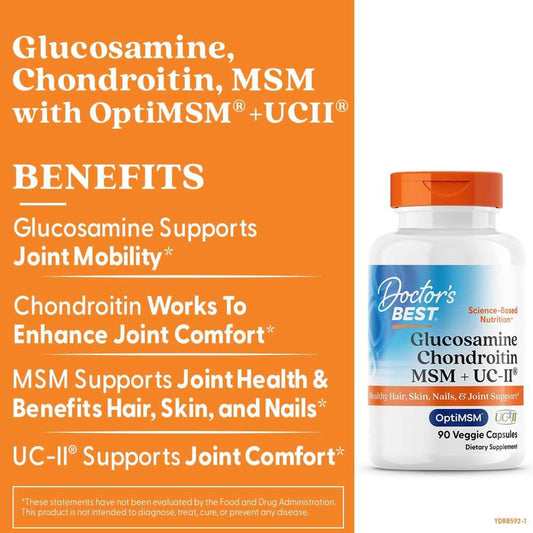 Doctor's Best Glucosamine Chondroitin, MSM + UCII, 90 Veggie Capsule
