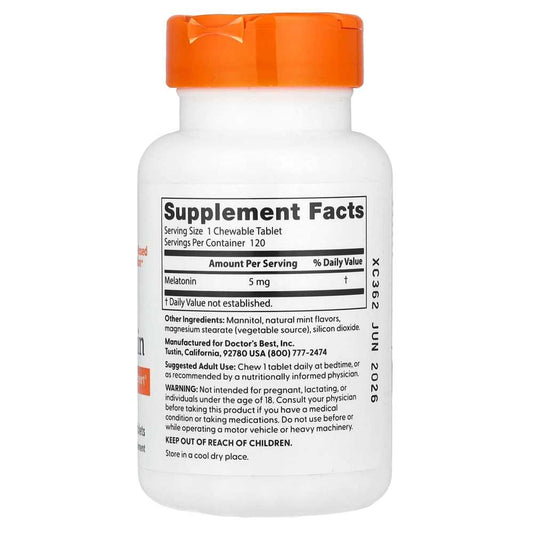 Doctor's Best Melatonin, Natural Mint, 5Mg, 120 Chewable Tablets