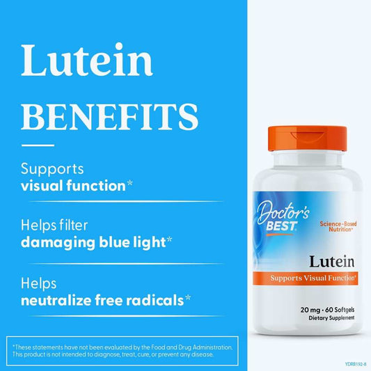 Doctor's Best Lutein with Lutemax 2020, 20 Mg, 60 Softgels