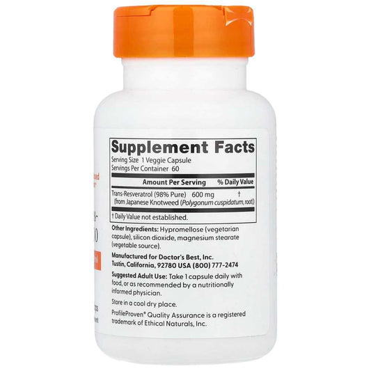 Doctor's Best High Potency Trans-Resveratrol 600 Mg, 60 Veggie Caps