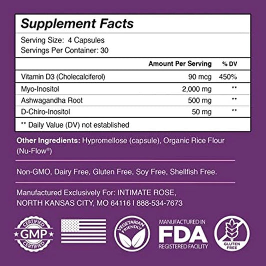 Intimate Rose Myo & D-Chiro Inositol + Ashwagandha & Vitamin D - 120 Capsules