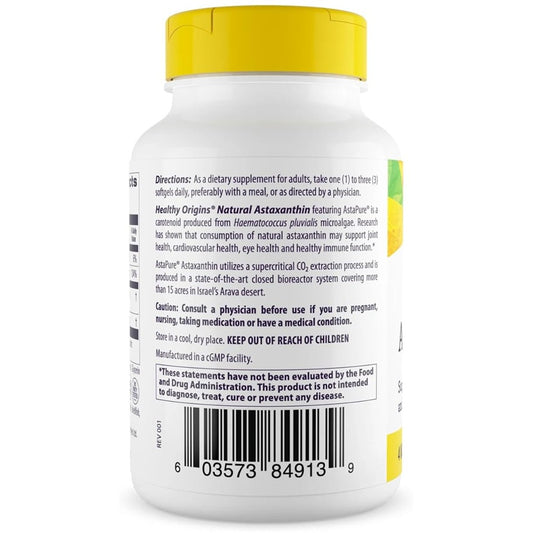 Healthy Origins Natural Astaxanthin 4mg - AstaPure® Antioxidant for Eye, Joint & Immune Support