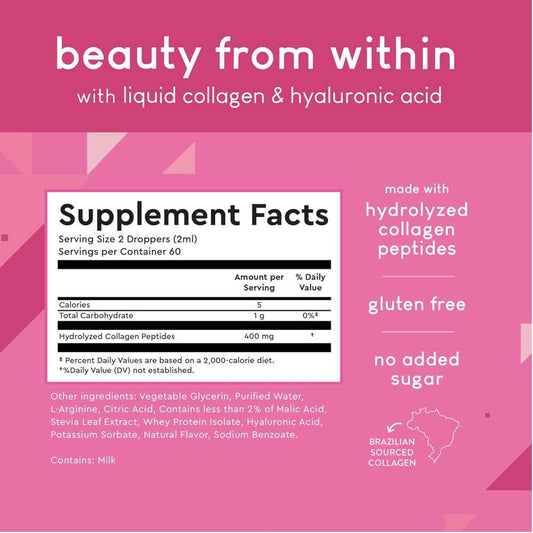 360 Nutrition – Collagen + Hyaluronic Acid | Liquid Formula | 120 M L | 40-Day Supply