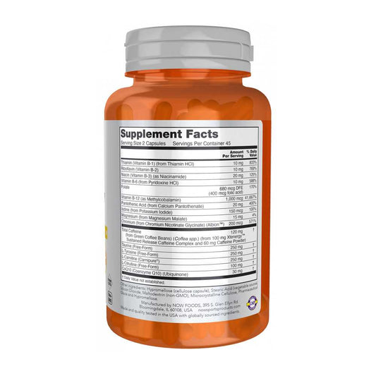 Now Sports Sustained Energy – Herbal & Nutrient Blend for Endurance & Stamina – 90 Capsules