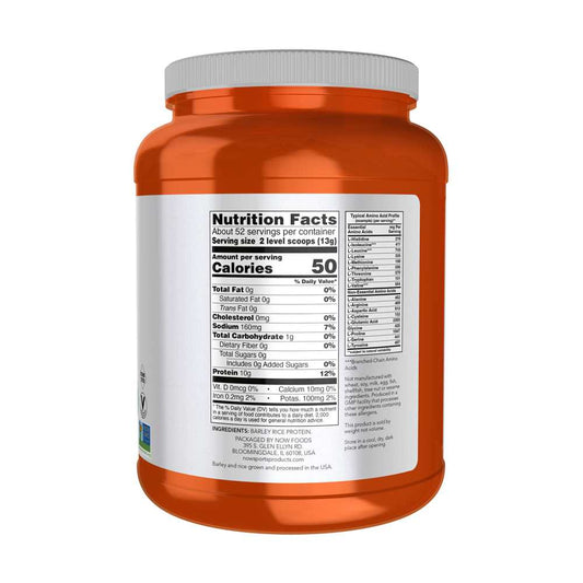 Now Sports Barley Rice Protein Powder – Plant-Based Protein Blend – Unflavored – 680g