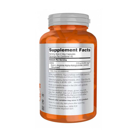 Now Sports Aakg 2200 – Arginine Alpha-Ketoglutarate Formula – Nitric Oxide Booster Veg Capsules – 180 Count