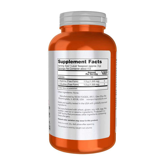 Now Sports Arginine & Citrulline Powder – Nitric Oxide Booster 340g