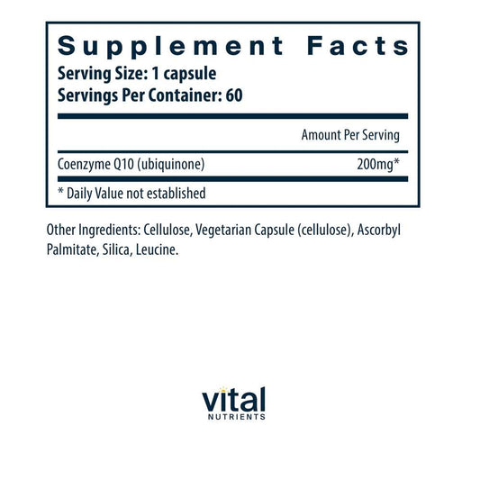 Vital Nutrients Co Enzyme Q10 200mg 60 Caps