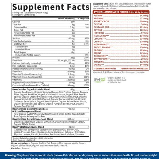 Garden of Life Raw Organic Fit Protein Coffee 16.4oz (465g) Powder