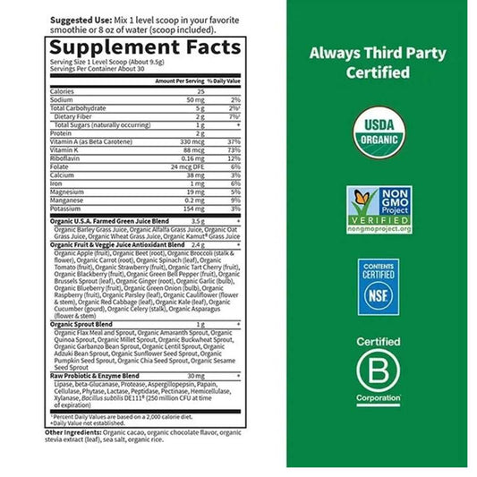 Garden of Life Raw Organic Perfect Food Green Superfood Chocolate Powder 285g