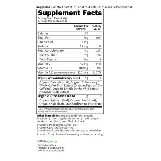 Garden of Life Sport Organic Plant-Based Energy + Focus Sugar Free Blackberry Cherry 12 Packets 0.2oz (6g) Powder