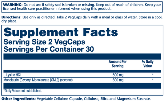 Solaray L-Lysine Monolaurin 1:1 Ratio 60 Caps