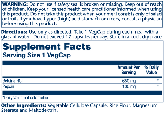 Solaray High Potency Betaine H Cl with Pepsin 100 Caps