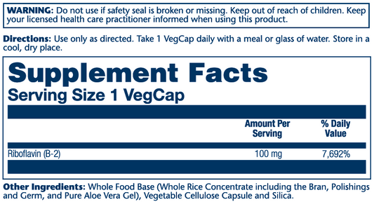 Solaray Vitamin B-2 (riboflavin) 100mg 100 Caps