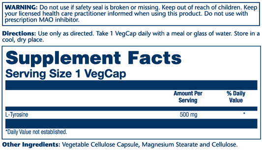 Solaray L-Tyrosine, Free Form 500mg 50 Caps