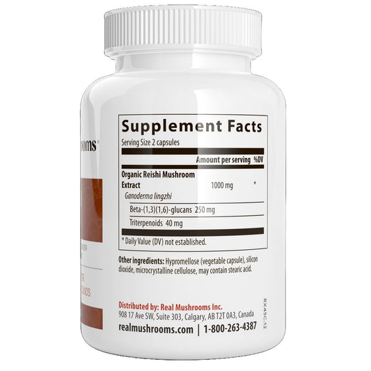 Real Mushrooms Reishi Longevity+ Mushroom Extract Capsules – 90 Capsules | Quality Grown & Verified for Active Compounds