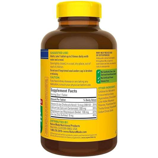 Nature Made Calcium Magnesium Zinc with Vitamin D3 – Bone Strength & Immune Support
