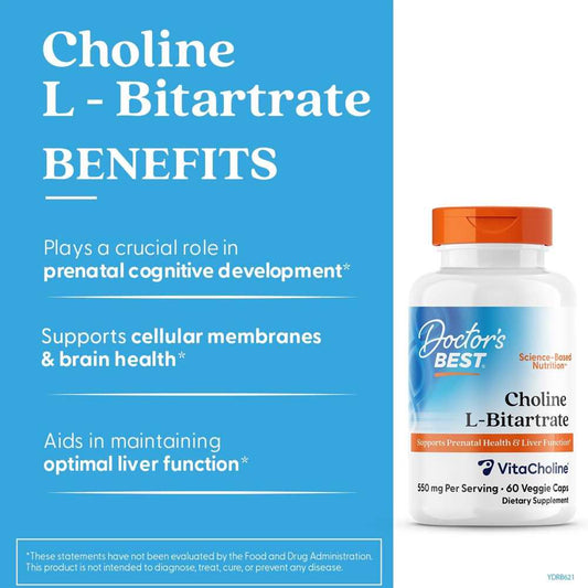Doctor's Best Choline L-Bitartrate, 550 Mg per Serving, 60 Veggie Caps