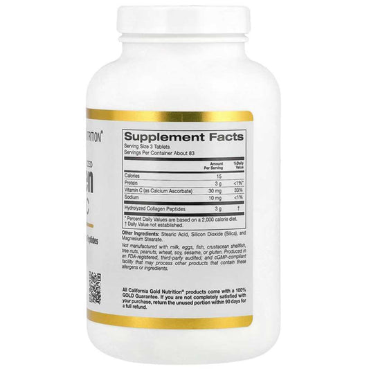 California Gold Nutrition – Hydrolyzed Collagen + Vitamin C | 250 Tablets | Skin & Joint Support