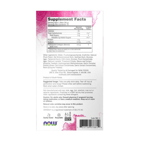 Now Foods Collagen Jelly Beauty Complex – Sweet Plum Flavor 10 Jelly Sticks (net Wt. 200 G / 7.05 Oz.)