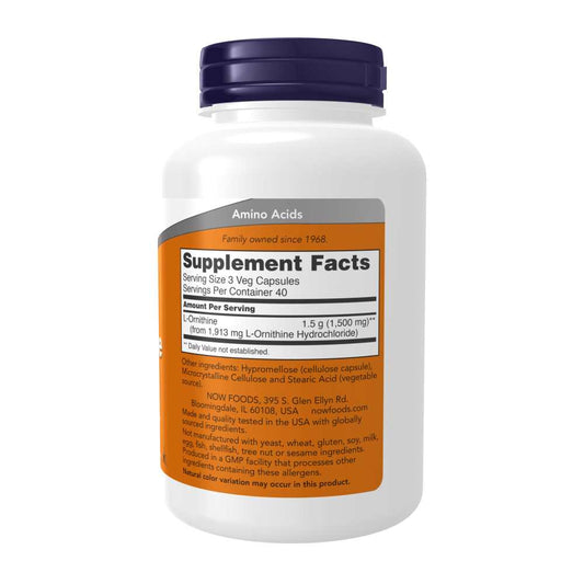 Now Foods L-Ornithine 500mg β Fitness Amino Acid for Healthy Protein Metabolism (120 Veg Capsules)