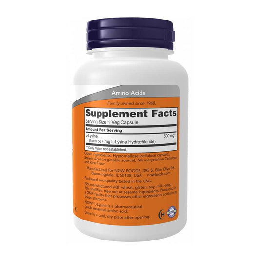 Now Foods L-Lysine 500 Mg β Collagen Production & Immune Health Support β 100 Vegan Capsules