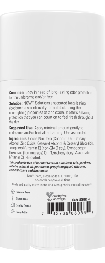 Now Foods Long-Lasting Deodorant β Unscented β Paraben & Aluminum Free β 2.2 oz. (62 g)