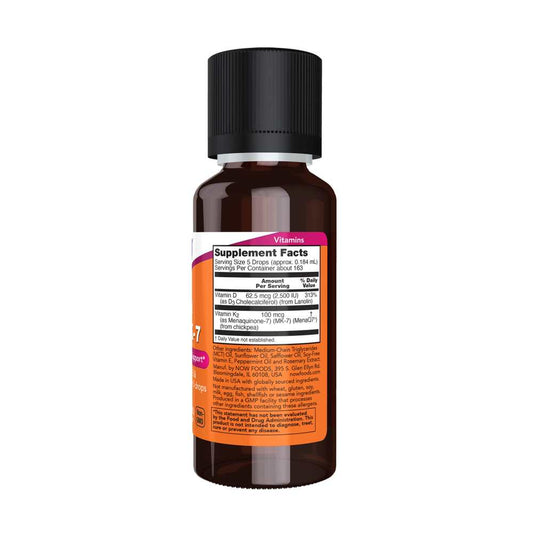 Now Foods Liquid D-3 & Mk-7 β Vitamin D3 2,500 Iu with K2 100 Mcg β Mint Flavor β 30 M L Dropper
