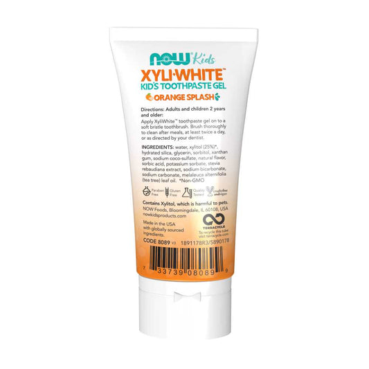 Now Foods Xyli-White Kid's Toothpaste Gel – Orange Splash – Fluoride & Sls-Free Formula – 3 Oz (85 G)