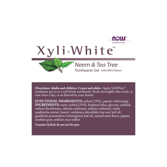 Now Foods Xyli White™ Neem & Tea Tree Toothpaste Gel – Fluoride-Free with Xylitol – Natural Whitening Toothpaste – 181 G