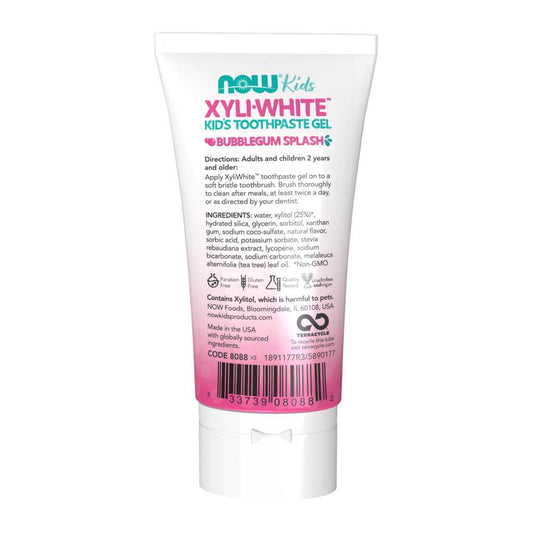 Now Foods Xyli White™ Bubblegum Splash Toothpaste Gel for Kids – Fluoride-Free with Xylitol – Gentle Oral Care – 85 G
