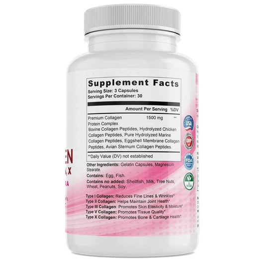XEMENRY COLLAGEN PEPTIDES Type I, II, III, V, X – Joint, Bone & Skin Support 120 Capsules Dietary Supplement