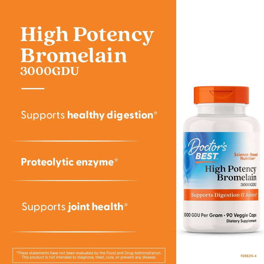 Doctor's Best High Potency Bromelain 3000 Gdu per Gram, 90 Veggie Caps