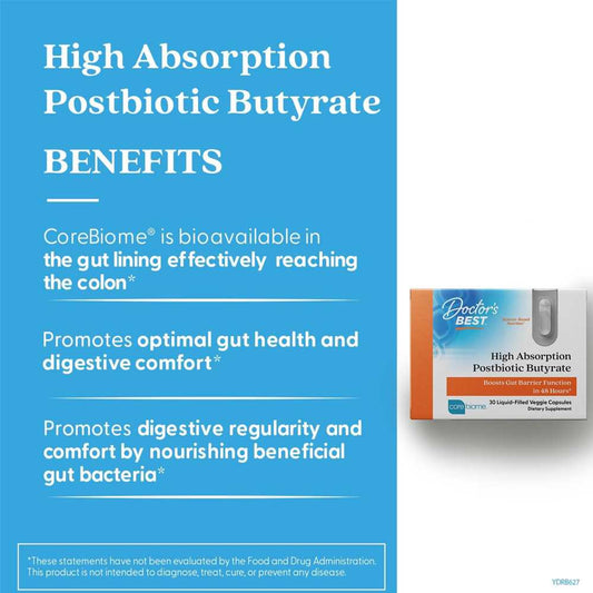 Doctor's Best High Absorption Postbiotic Butyrate, 300 Mg, 30 Liquid-Filled Veggie Capsules