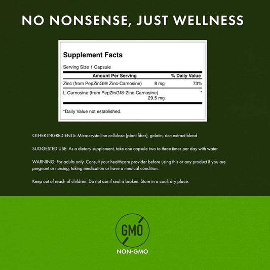 Swanson Zinc Carnosine with PepZinGI – Digestive Health Support | 60 Capsules