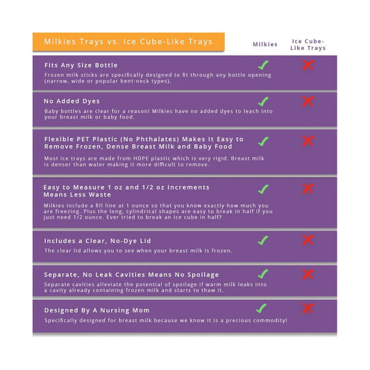Milkies Milk Trays – Breast Milk & Baby Food Freezing System Freeze 1oz (30ml) Servings | Medical-Grade, Pre-Sterilized Plastic | 2 Reusable Trays | 16oz (480ml) Total Capacity