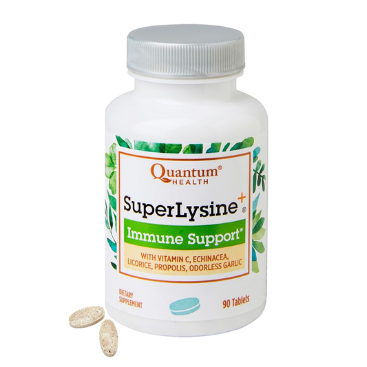 Quantum Health Super Lysine Immune Support with Vitamin C, Echinacea, Licorice, Propolis & Odorless Garlic, 180 Tablets