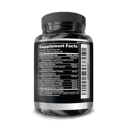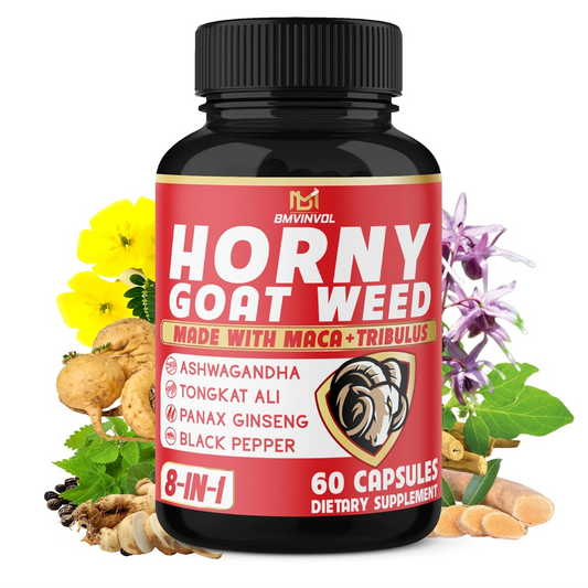 Horny Goat Weed supports sexual wellness and libido, enhances stamina and physical performance, promotes bone and joint health, boosts energy and vitality, and supports hormonal balance.