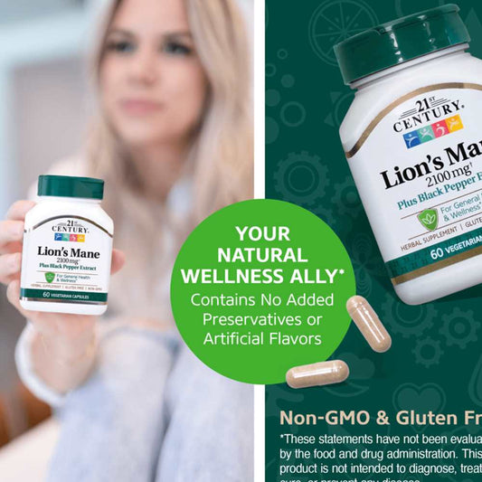 21st Century Lion's Mane 2100 Mg Plus Black Pepper Extract 60 Caps