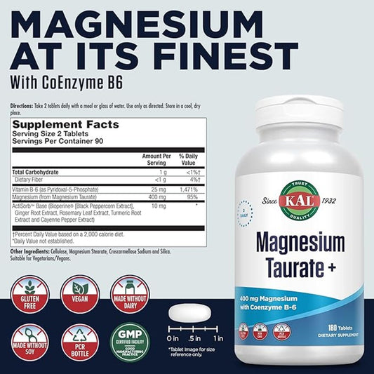 KAL Magnesium Taurate+ 400mg – Heart & Nerve Health Support